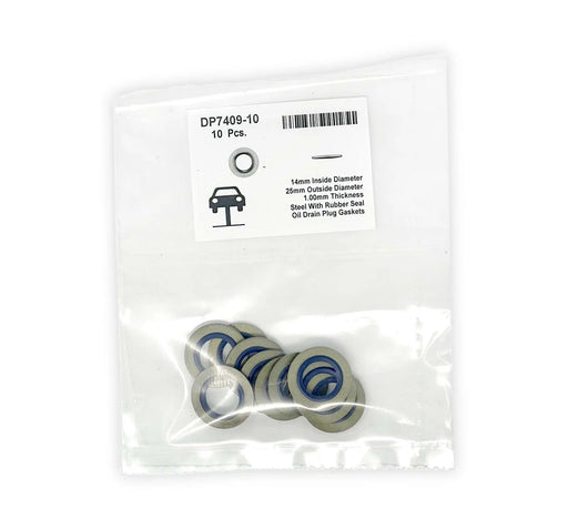 View full detailsThis pack of 10 steel oil drain plug gaskets is perfect for automotive and industrial use. With a 14mm inner diameter, a 25mm outer diameter an...