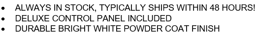 Bright white powder coat panel finish (inside and outside)