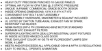 The iDEAL ‘A-Frame’ Open Front Paint Booth is an economic, commercial grade open front paint booth designed to provide optimal ‘air flow’ with superior lighting for high-quality spray painting & finishing applications. The iDEAL Open Front Paint Booth is a great solution for industrial batch-type & automated production-type finishing systems. Air flows through the open front section of the booth, then passed through the work area towards the rear of booth into the filtered exhaust chamber. Filtered exhaust air is then drawn through the exhaust plenum and discharged upwards through the exhaust fan and ducting. Easily installed with heavy duty, precision punched 18-gauge panels allowing for quick nut and bolt assembly. Standard with bright white powder-coat finish, deluxe control panel, premium exhaust filters, hinged glass light fixtures and high-quality tube-axial exhaust fan to complete the package for a premium, high-quality Open Front Paint Booth, all at a great value!